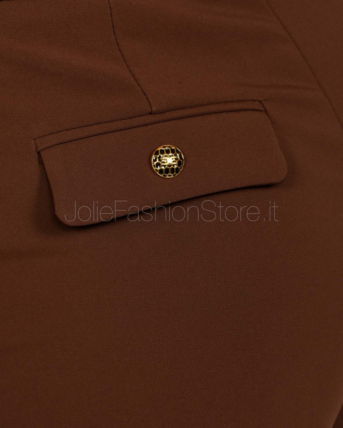 Elisabetta Franchi Pantaloni in Crêpe Leggero Con Catena Gioiello Coffee