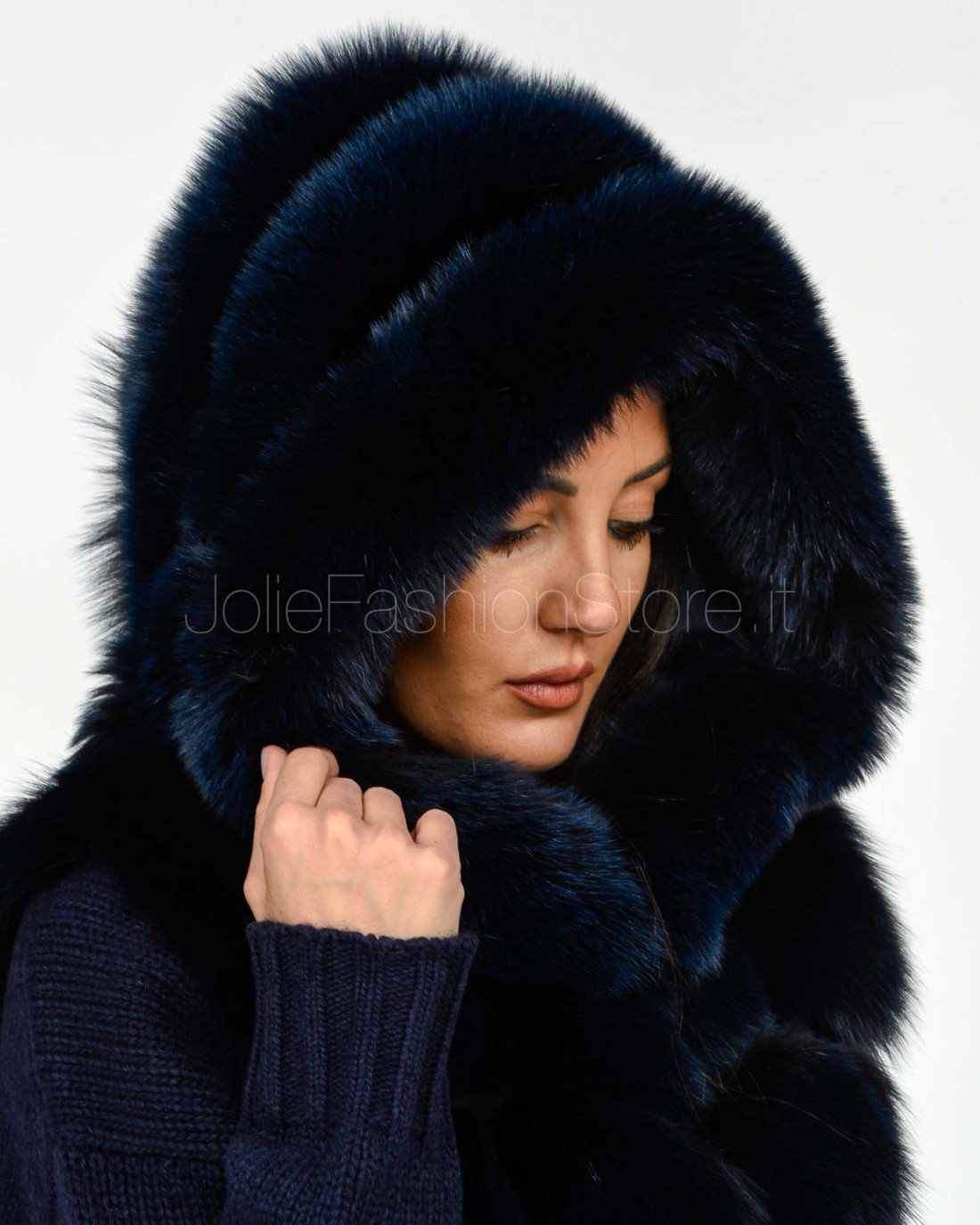 Frame Pelliccia Gilet Volpe Medio con Cappuccio Blu