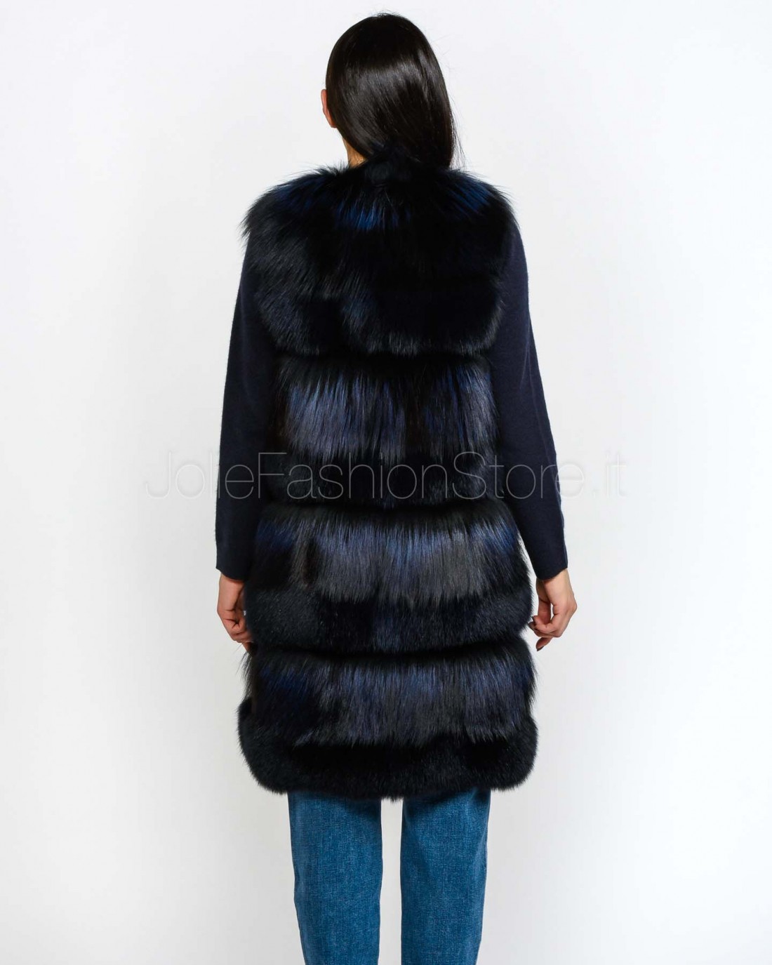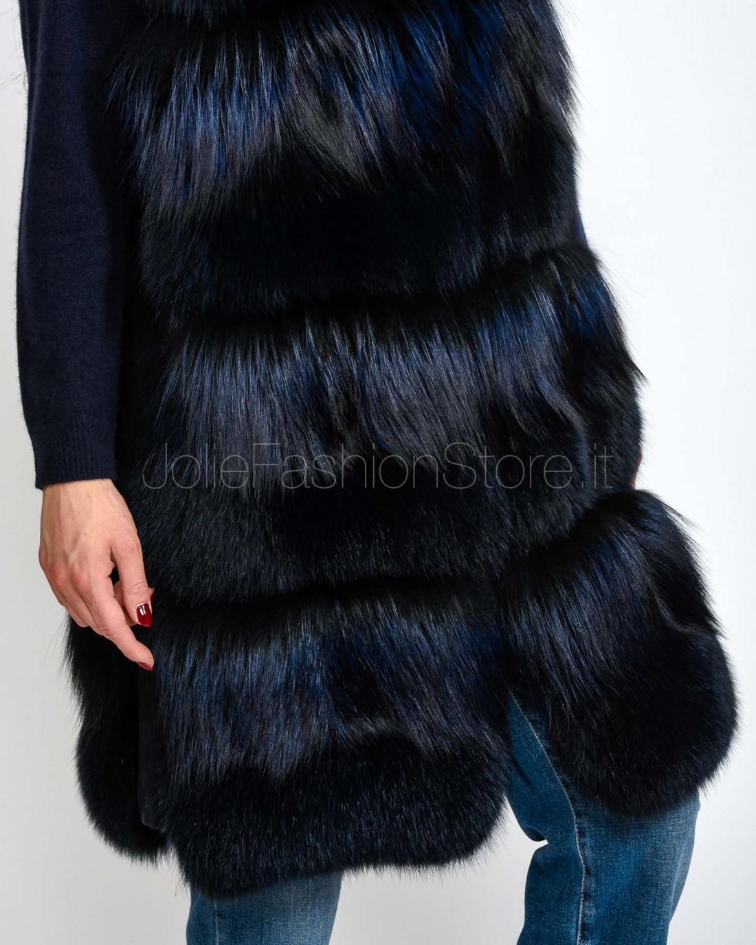 Frame Gilet In Pelliccia Volpe Blu/Nero
