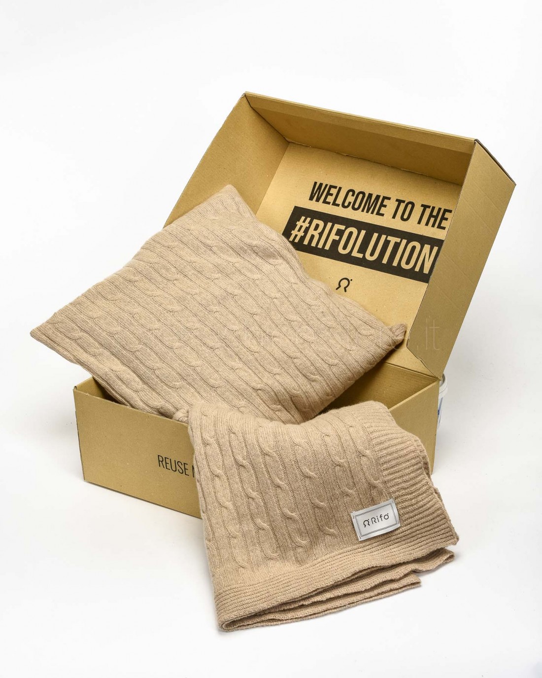 Rifò Set Coperta e Due Federe Cuscini a Trecce Beige Cantuccio