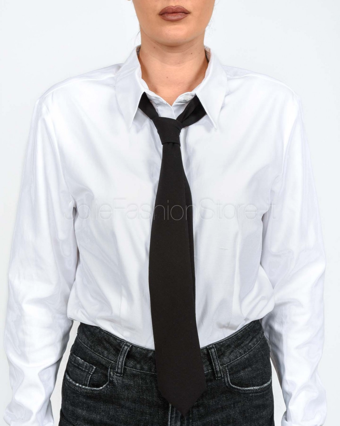 Patrizia Pepe Cravatta in Twill di Cotone Stretch Nero