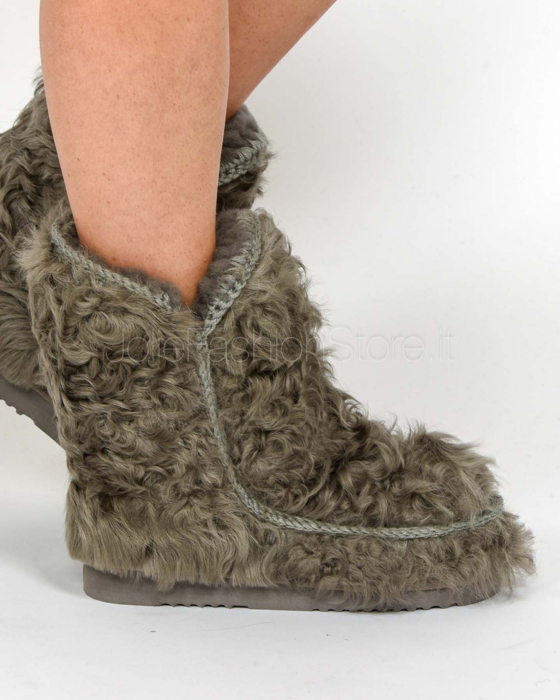 L'eskimo 24 Chekiang di mou reinventa il calore e lo stile con la sua pregiata pelliccia naturale di capra, lavorata a mano con maestria artigianale. Un design ispirato alla natura, unico e audace, avvolto dalla morbidezza di una fodera in autentico montone. Completano il modello le iconiche cuciture in lana all'uncinetto e una suola esterna in EVA e gomma, pronta a seguirti ovunque questo inverno.