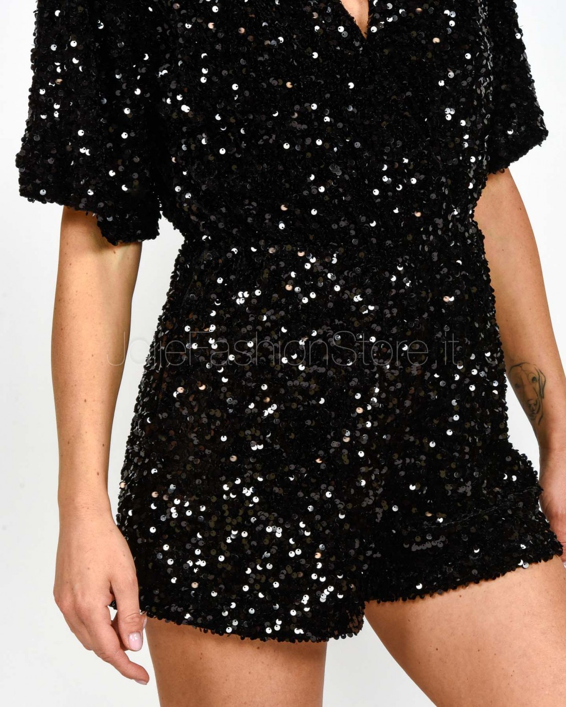 Grace & Mila Tuta in Velluto All Over Paillettes Nero